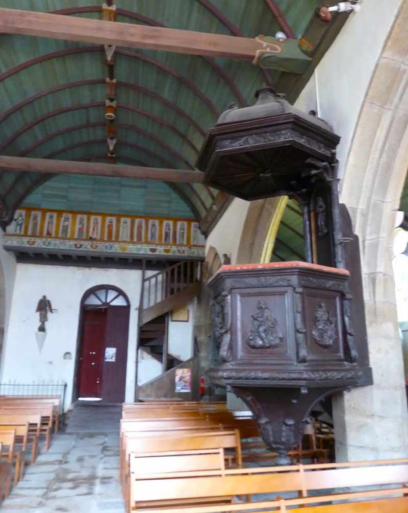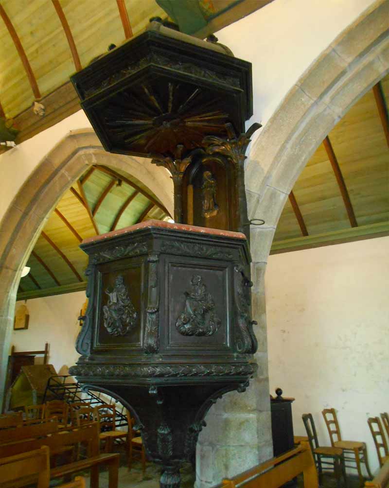 Cette église date du XVIème siècle, à l’exception du clocher, reconstruit en 1697 et complété par une flèche élevée par l’architecte Joseph Bigot en 1850.