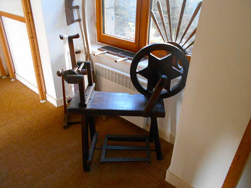 Ces paquets de chiffons alimentaient les moulins à papier, exposition de vêtements et d’outils anciens.