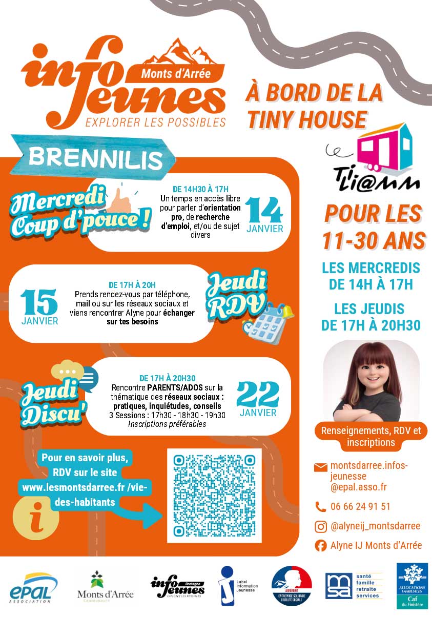 Le Service d’Information Jeunesse « Info Jeunes » de Monts d’Arrée Communauté, porté par l’association EPAL, est un service d’accueil libre, anonyme et gratuit à destination des jeunes de 11 à 30 ans.